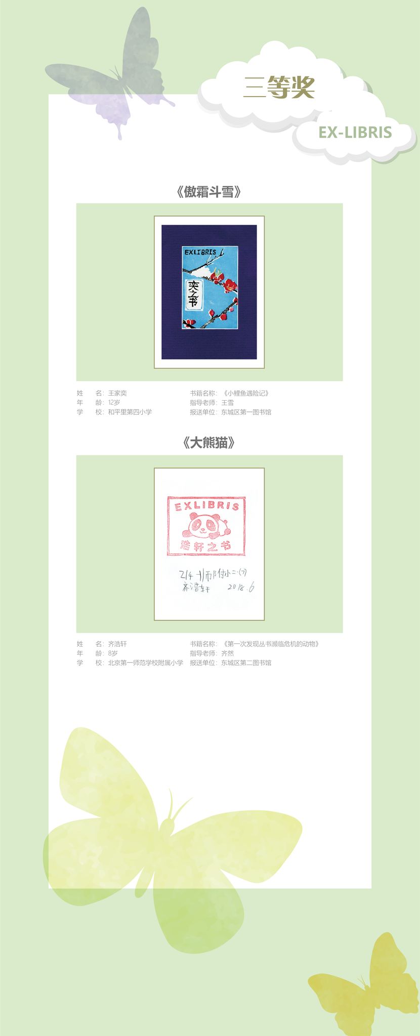 王家奕《傲霜斗雪》、齐浩轩《大熊猫》