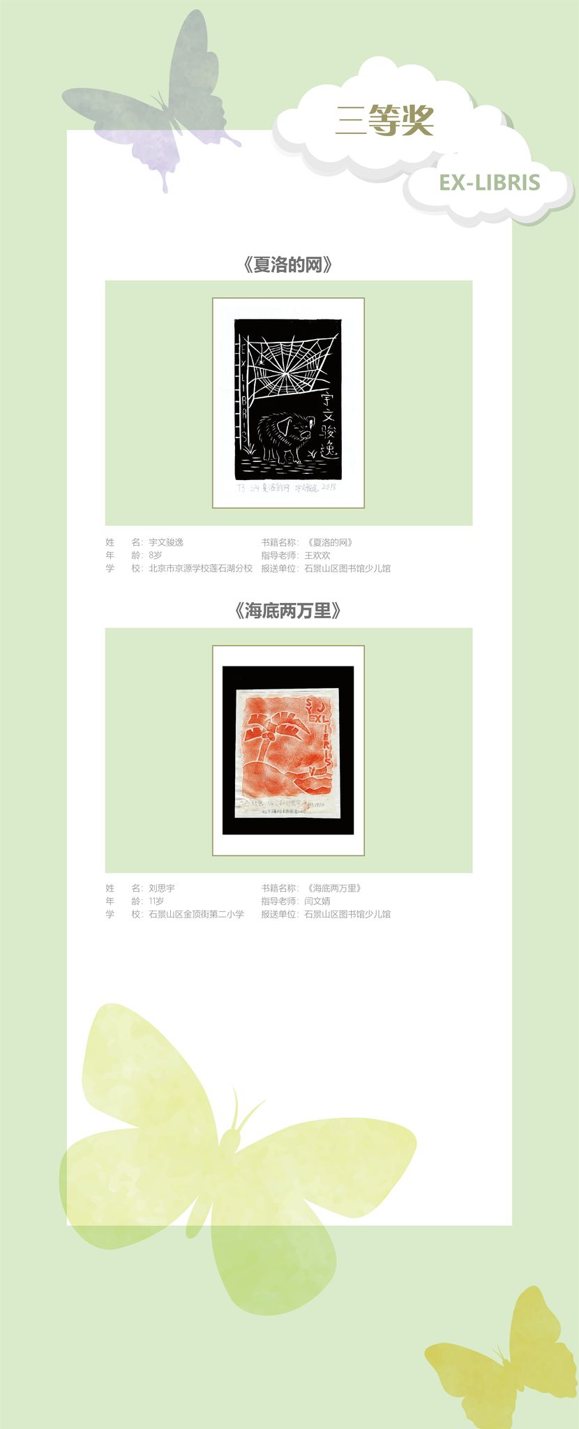 宇文骏逸《夏洛的网》、刘思宇《海底两万里》